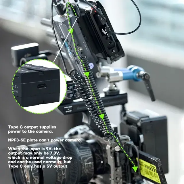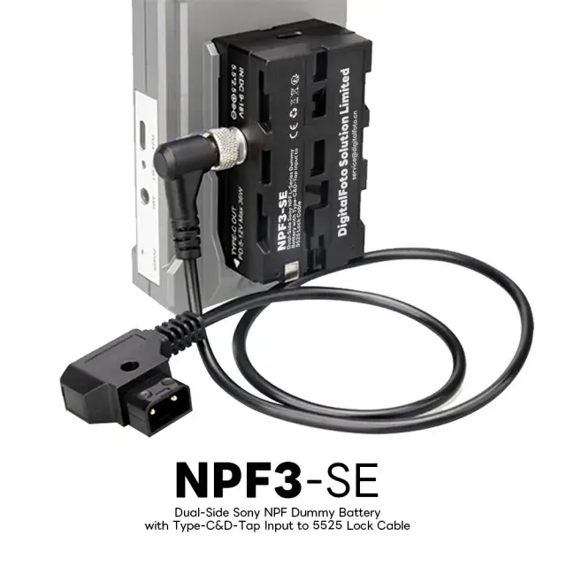 NPF3-SE Dual-Side NPF Dummy Battery with Type-C&D-Tap Input to 5525 Lock Cable